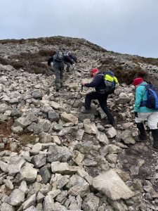 The weather was perfect (again!) and because it’s been dry for the last few weeks, there wasn’t too much mud. The paths were mostly pretty good – and especially on the lower slopes of Great Sugarloaf, where the trail has recently been re-ballasted. I enjoyed the proper leg-stretch, and the scrambles over the bouldery rocky tops to get the summits and the 360 degree views which they afford. Simply stunning. The Great Sugarloaf – because of its proximity to Dublin, its striking profile and its lofty views – is a popular destination, so the scramble to the top – as well as being steep and slippy, is very busy. So you’re very unlikely ever to get the summit to yourself, but you still get an excellent sense of lofty achievement from the top. Little Sugarloaf and Carrigoona, by contrast, were pretty much deserted and in a way, were more enjoyable as a result.