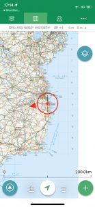 Today’s overview location (the red cross in a circle shows where Val and I are at the moment) |