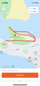 Close-up location (The orange line shows where I walked) (Click button below to download GPX of today’s walk as recorded, or see interactive map at bottom with elevations corrected): Burrow beach from Sutton station |