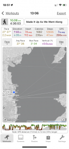 Today’s summary | Val had a day off so leisurely morning then lunch on the beach and spontaneous walk down the coast to Portmarnock. Back over Paddy’s Hill. Very enjoyable not to be under any time pressure | ||||