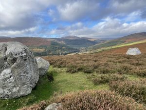 Looking north towards the Brockagh and Tonelagee Lunch stop in the Brusher Gap hut (on the Wicklow Way – we had a birthday celebration here last year)