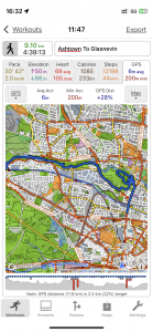 Close-up location (The blue line shows where we walked) (Click button below to download GPX of today’s walk as recorded, or see interactive map at bottom with elevations corrected): Ashtown Tolka Glasnevin and Botanics |