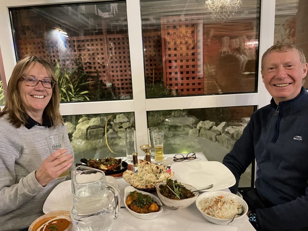 Today’s summary | Spent the morning relaxing and listening to podcasts then Val went to work after lunch while I did some Spanish homework and did some paperwork. Short walk round the demesne in the late afternoon then when Val was back we went to Kathmandu Kitchen for dinner | ||||