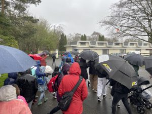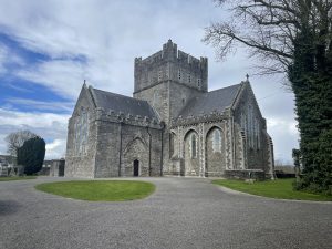 But just down the road is the Lodge Bog trail, which we had a quick look at in the pouring rain – it was very atmospheric and the bogs do have a peculiarly hypnotic loneliness which is almost enchanting. From there we (well – Val as she is still doing the honours at the moment) drove to Kildare where we had a very brief look round – it’s charming and prosperous – and had lunch in the car as yet more rain thundered down outside.