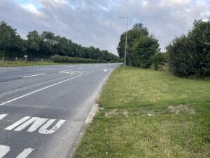 Close-up location (The blue line shows where I walked) (Click button below to download GPX of today’s walk as recorded, or see interactive map at bottom with elevations corrected): Walk to airport |