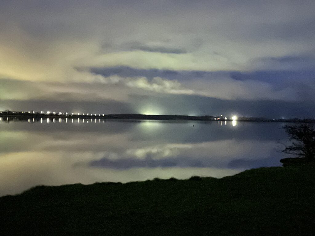 I walked back along the Broadmeadow estuary, and the water was mirror-calm. A marked contrast to yesterday when the easterly wind was blowing up everything into a foam-flecked frenzy. I extended the walk a little so I could pick up some milk at Tesco before returning to the flat – and to my delight (but my waistline’s dismay) I discovered a load of sell-by date biscuits were being sold off cheap tonight. I obviously couldn’t let purchasing opportunity like that go to waste, so filled up my basket with a selection of a few of the biggest bargains, alongside the milk that I had actually gone into the shop for.