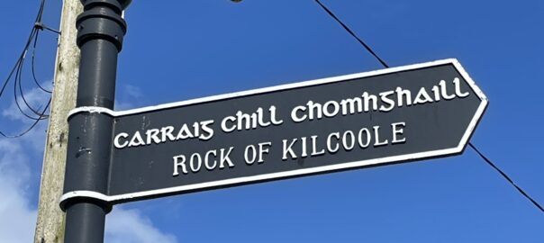 As we passed through Kilcoole village, we climbed up the Rock of Kilcoole – an outlying quartzite outcrop, presumably part of the same geological feature responsible for Bray Head and the Sugarloaves. It’s not very high but you get good views from the top.