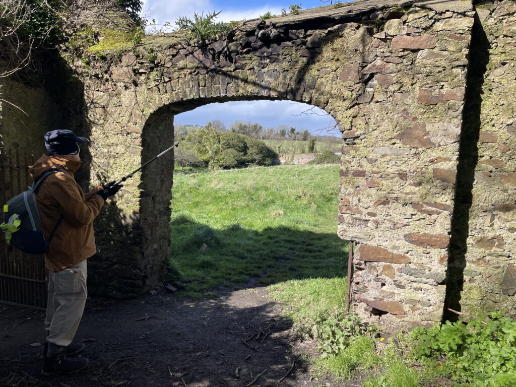 After lunch, we had a look at the local church, which has an interesting ancient brass bell mounted in a frame in a flowerbed close by. Then a little further on, a couple of us ducked off the main path to explore the ruins of the old walled garden at Darraghville convent. Fascinating history, but not a lot left to see now.