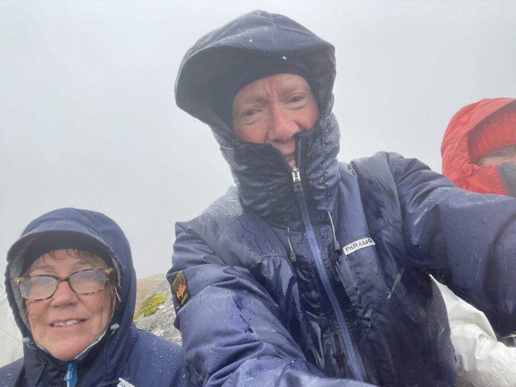 Mid-squall on the summit.   Just about hanging on in there!   Paramo kept us both completely dry