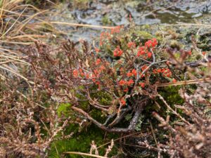 On the lonely uplands.   Amazingly just 1 hour from O’Connell Street Cladonia floerkeana, Devils matchstick, an eye-catching lichen in the muddy undergrowth