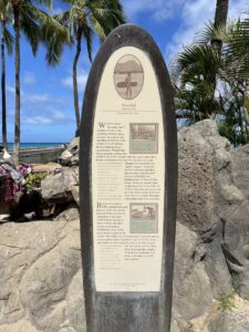 We started our day with a walk down Waikiki Beach, which is only a few yards from the Queen Kapi’olani hotel, where we are staying. It was a beautiful warm day and it didn’t take long before the allure of the Pacific Ocean became too much to resist. So I pulled on my swimming shorts and jumped in for a splash, while Val kept guard on my clothes. Fantastic! You can’t beat swimming in seawater that’s decently warm.