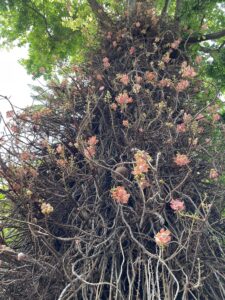 Once dressed again, we sought out the nearest bus stop and caught a number 20A towards the Foster Botanical Gardens. It’s a beautiful spot, full of interesting plants, and we spent a couple of hours having a snack lunch and wandering around, seeking out the 21 specimens on the tree trail. Perhaps the most impressive were the kapok tree, shedding its seeds in clouds of fluff, and the cannonball tree – which produces peculiar large spherical fruit directly out of its trunk.