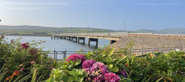 Once we arrived, we could immediately tell that the contrast with Malahide was going to be stark. The air was clear, filled with seabirds and ozone, the mountains were lush green sweeping down to the fractal coastline, and the roads were quiet. In short. it’s beautiful. We’re fortunate in that we are staying in a particularly well sited guesthouse with a stunning view over Valentia Island (surprisingly enough, it’s called “Valentia View”) just a couple of km away to the north. Our accommodation itself is just outside the tiny harbour town of Portmagee. We are close, too, to the bridge over to Valentia Island – which surely beckons us to visit in the coming days.