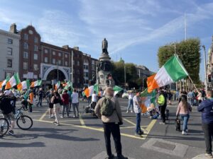 To mix things up a today we went to Dublin by bus – the H2 gently and slowly rocked us into town – and I am pretty sure that both of us fell asleep briefly along the way. When we got into town, the first thing that we discovered that was going on was a large demonstration in O’Connell Street. We gave it a wide berth and crossed the river over to Westmoreland Street and from there on to St Andrew St and the Cotswold store. When I got there, the shop manager was as confused as I had been, in his case as to why this mysterious package from Fjallraven had suddenly arrived unannounced this morning. Anyway, I was reunited with my wax and all was well.