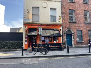 With that mystery sorted out, we decided that we’d have a short sojourn into Dublin to pick up my new purchase and generally to see what was going on. Before that, though, we’d had a very leisurely morning, even if I did have to spend some of it sorting out a few tax matters. That aside, it was a real tonic. We followed it up with a light lunch of breaded fish, peas and potato croquettes, left over from last night. Tasty and nutritious!