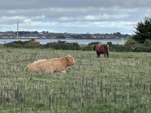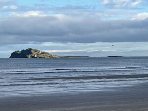 Our walk was led today by Alice (to whom many thanks!) and headed north from Sutton, up along the coast to Baldoyle then briefly inland through the scrubland on the site of the old racecourse. Once in Portmarnock, I dropped into the petrol station to get a sandwich for lunch then we paused to eat in the small parkland area off the Strand road. Note to self. Although eating in restaurants (as I did a lot in London) and petrol stations (today) is convenient and tasty, it’s not very healthy. I need to do better.