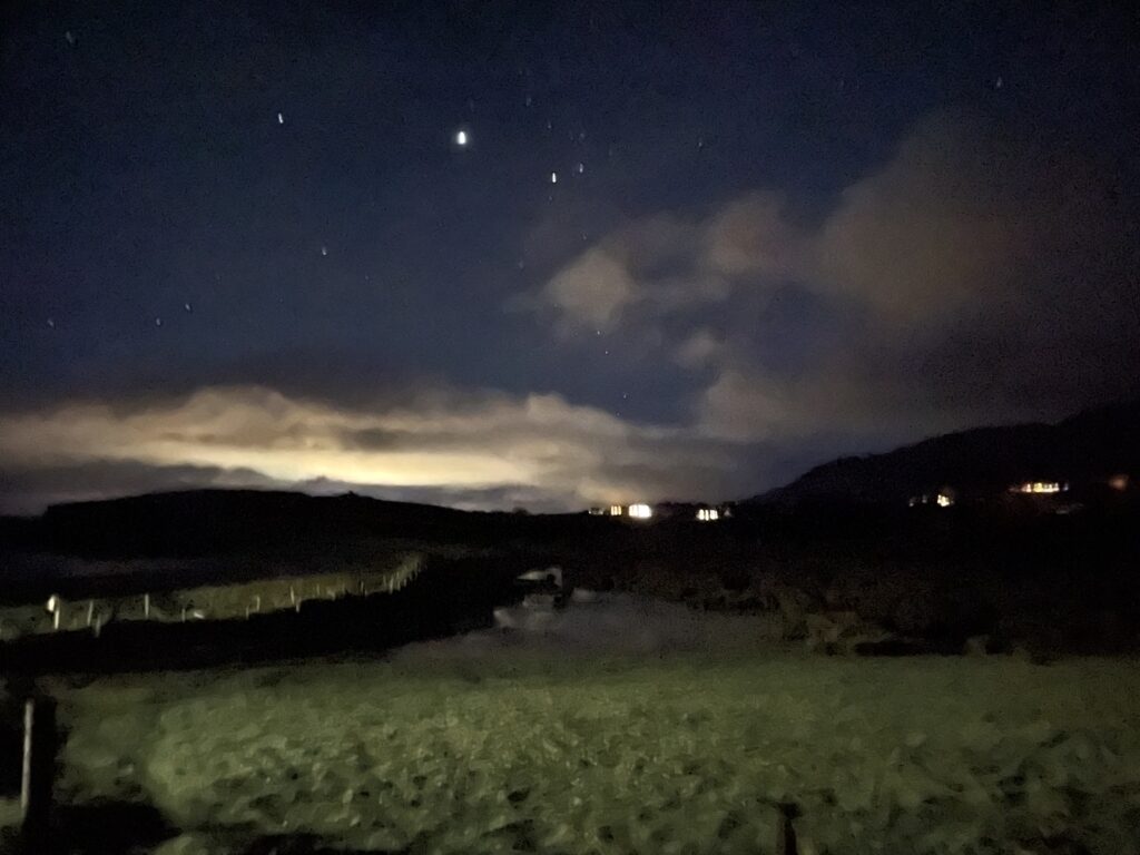 Went made it back to An Teach Ban by 3:45 and after getting the fire lit and catching up on the news, we retired to Stauntons for a couple of pints. But not before I’d strolled down to Lecanvey pier (in the pitch dark) to check out the little harbour.