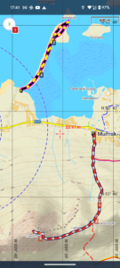 Close-up location (The dashed lines show where we walked) (Click buttons below to download GPXs of today’s walks as recorded, or see interactive map of Croagh Patrick walk at bottom with elevations corrected): Croagh Patrick with family Bertra beach |