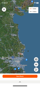 Close-up location (The yellow arrowed line shows where I walked) (Click button below to download GPX of today’s walk as recorded, or see interactive map at bottom with elevations corrected): Intreo Swords loop walk |