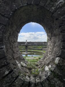 We returned to the estate via a traffic-free back road, and eventually found the gardens. They were well maintained like most things OPW, and we enjoyed looking around. We also found a secluded corner surrounded by tall well maintained yew hedges to enjoy our lunch (despite the annoying drone buzzing around overhead). After lunch and a thorough inspection of Lutyens’ work, we returned to the car via the now-ruined orangery and castle folly, and set off back to Malahide.