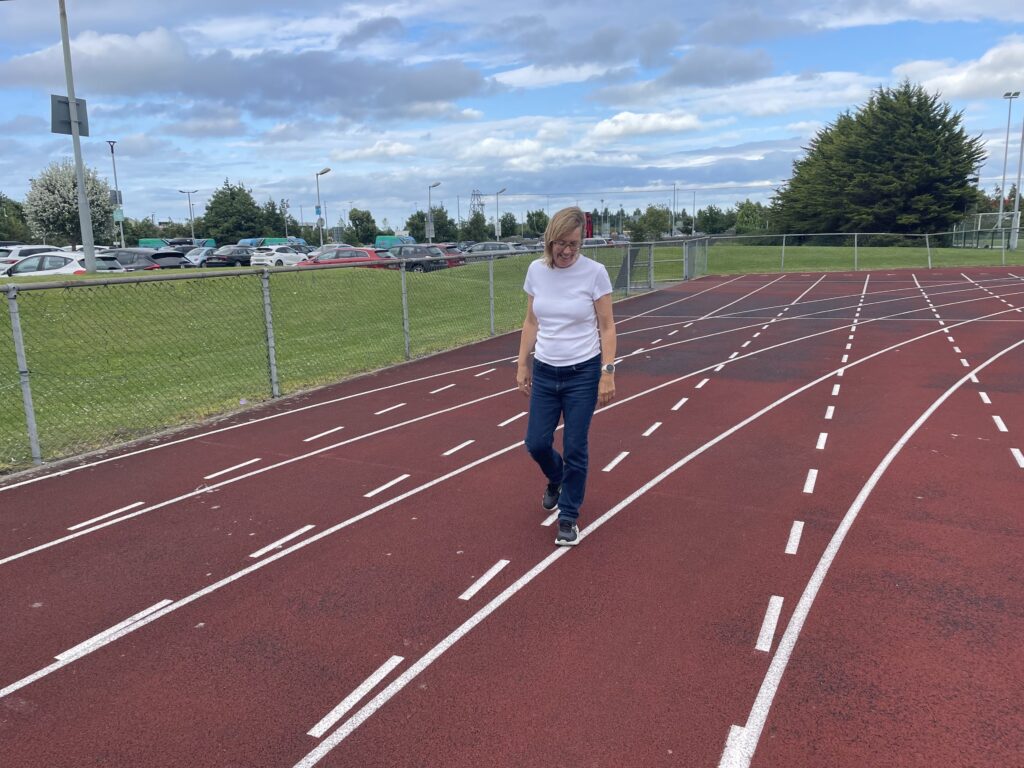 By this stage it was raining so we hot footed it back to the car and set off for the 90 minute drive back to Dublin. We passed the time listening to podcasts and then broke the journey at the ALSAA sports club near Dublin airport. Val wanted to check out their running track and indeed it did look pretty good. She even did a quick 400m lap to test the running surface.