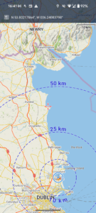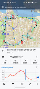 Close-up location (The blue line shows where I walked) (Click button below to download GPX of today’s walk as recorded, or see interactive map at bottom with elevations corrected): Malahide Mountains |