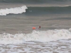 To add to the scenic interest, the sea was spectacularly stormy and the sky was painted pink yellow and blue by the setting sun. Despite the inclement conditions, there were still a few swimmers about which struck me as being exhilaration bordering on foolhardiness.