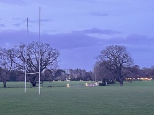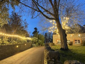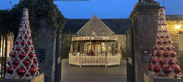 Hurling, tree and castle.   A Malahide archetype Festoon lighting showing the way