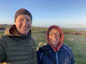 After a quick interlude for coffee, we donned our warmest jackets hats and scarves and set out to go on a short walk. Displaying a distinct lack of imagination, we just went up to the top of Paddy’s Hill and then down to the coast at Portmarnock. But in what was a definite departure from the norm, we didn’t stop to enjoy Spar-bought refreshments on the beach, because it was just too cold and windy.