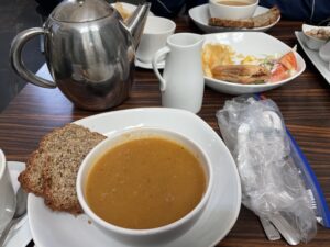 It didn’t quite work out that way though. The lunch was good (soup and sausage rolls) and the ambience was congenial, so we spent a long time dining and then by the time we had finished, we needed to set off to catch the 1533 train back to Dublin.