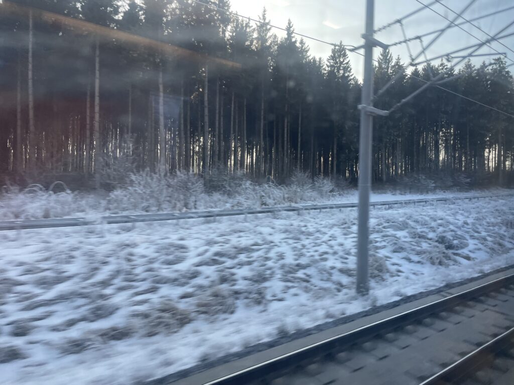 Despite the slightly convoluted journey, it all was to plan and all the connections went like clockwork. Along the way I got a glimpse, through my (slightly grubby) ICE train window, of the deep German rural landscape. Germany Profonde I guess you could call it – locked in its frosty winter slumber.