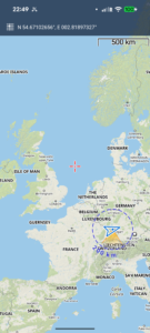| Today’s overview location (The blue mark shows the location of my route) |
